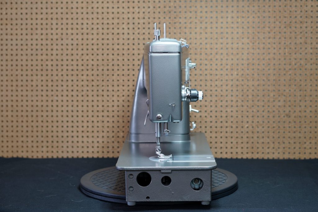 This solid metal beauty is complete with all of its little bits and screws, lovingly restored using parts from at least three 338 machines. Assembled from the ground up on a repainted bare chassis, each individual part, down to the last screw, was cleaned, polished, and fine-tuned for perfect working order. It’s as good as if it had just left the factory, with new transmission belt, revised motor with new brushes, polished hook, and precisely timed.